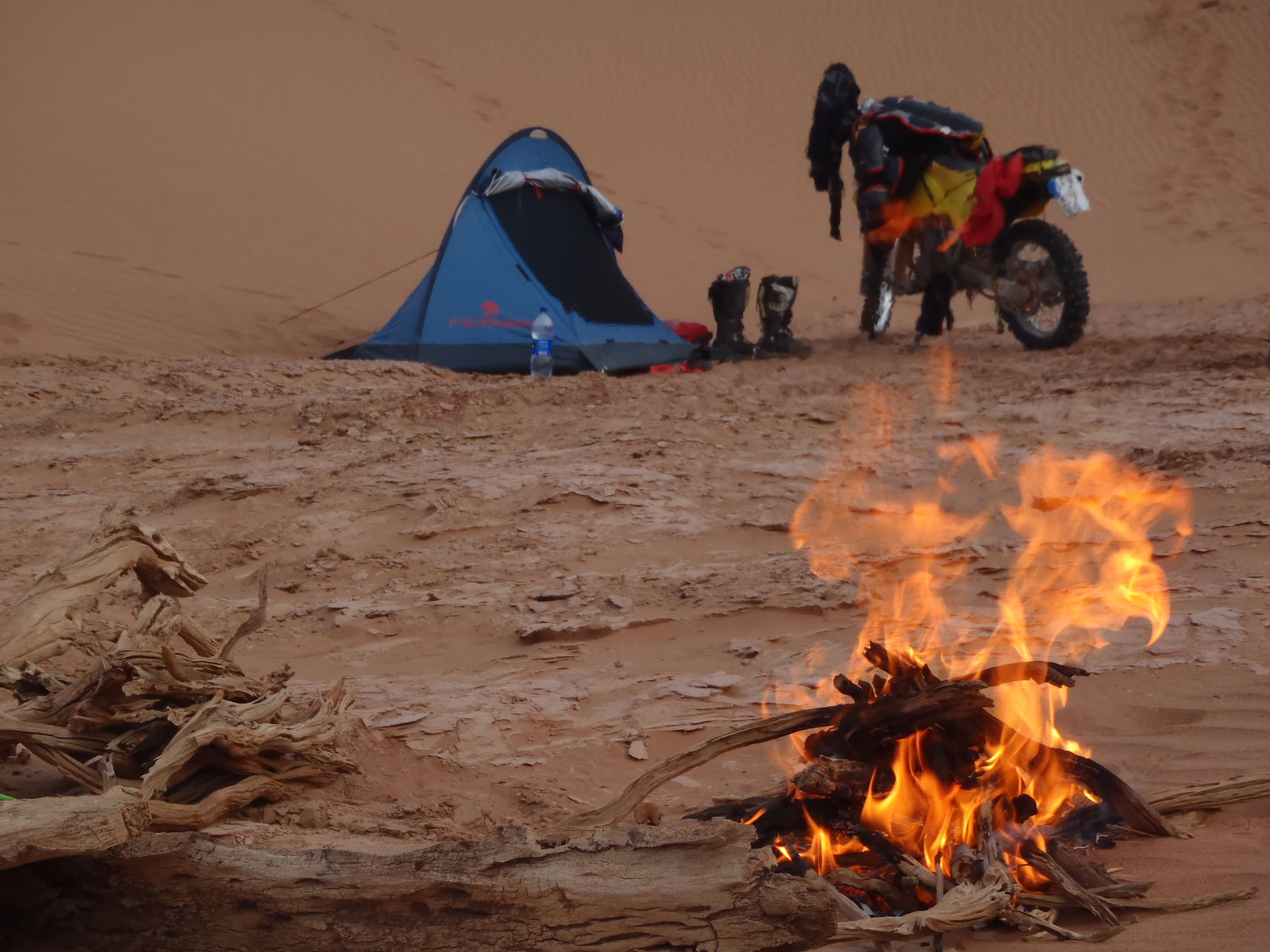 Mit der DRZ-400 E in Marokko, gleiches Gepäck und Zelt (2011).