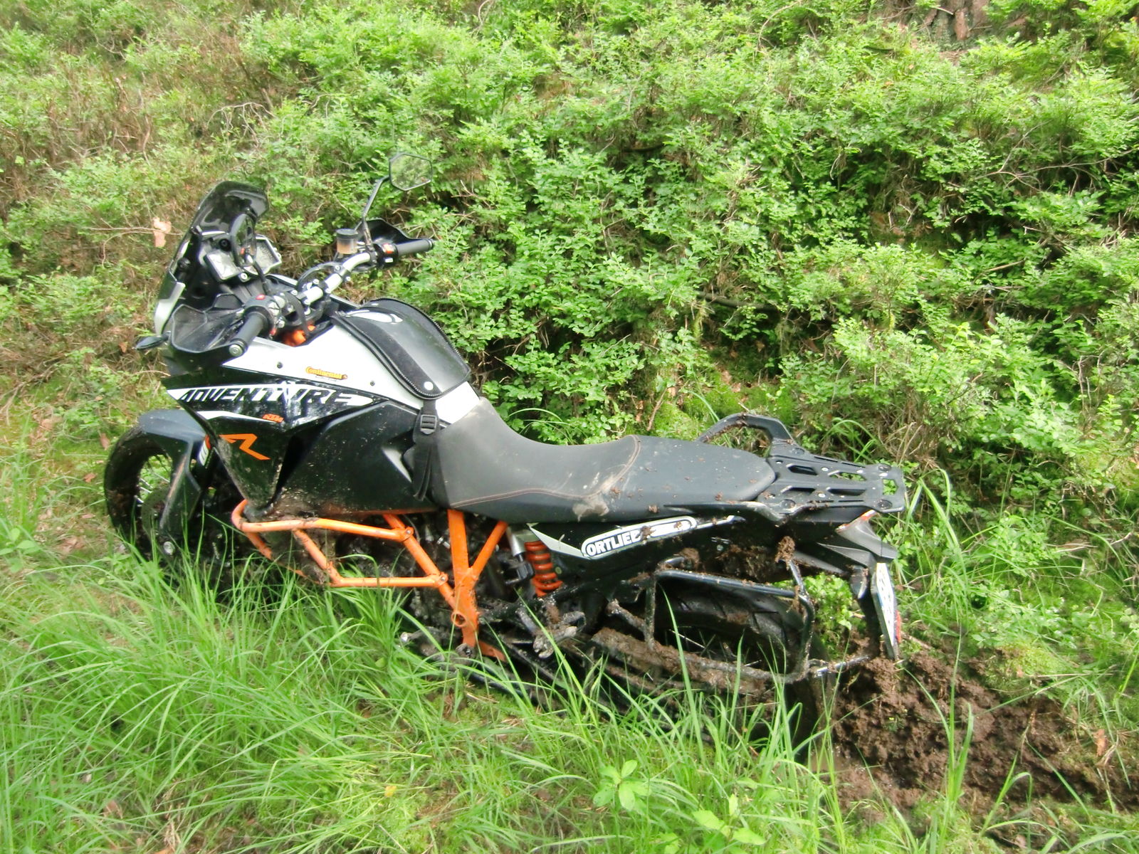 An dieser Stelle verbrachte ich einige Zeit bis ich die R auf den rutschigen Waldweg in die andere Richtung gewuchtet hatte und das hat sie mit meiner 950 S gemeinsam das Teil wird immer schwerer :mrgreen Danach war ich etwas Ko