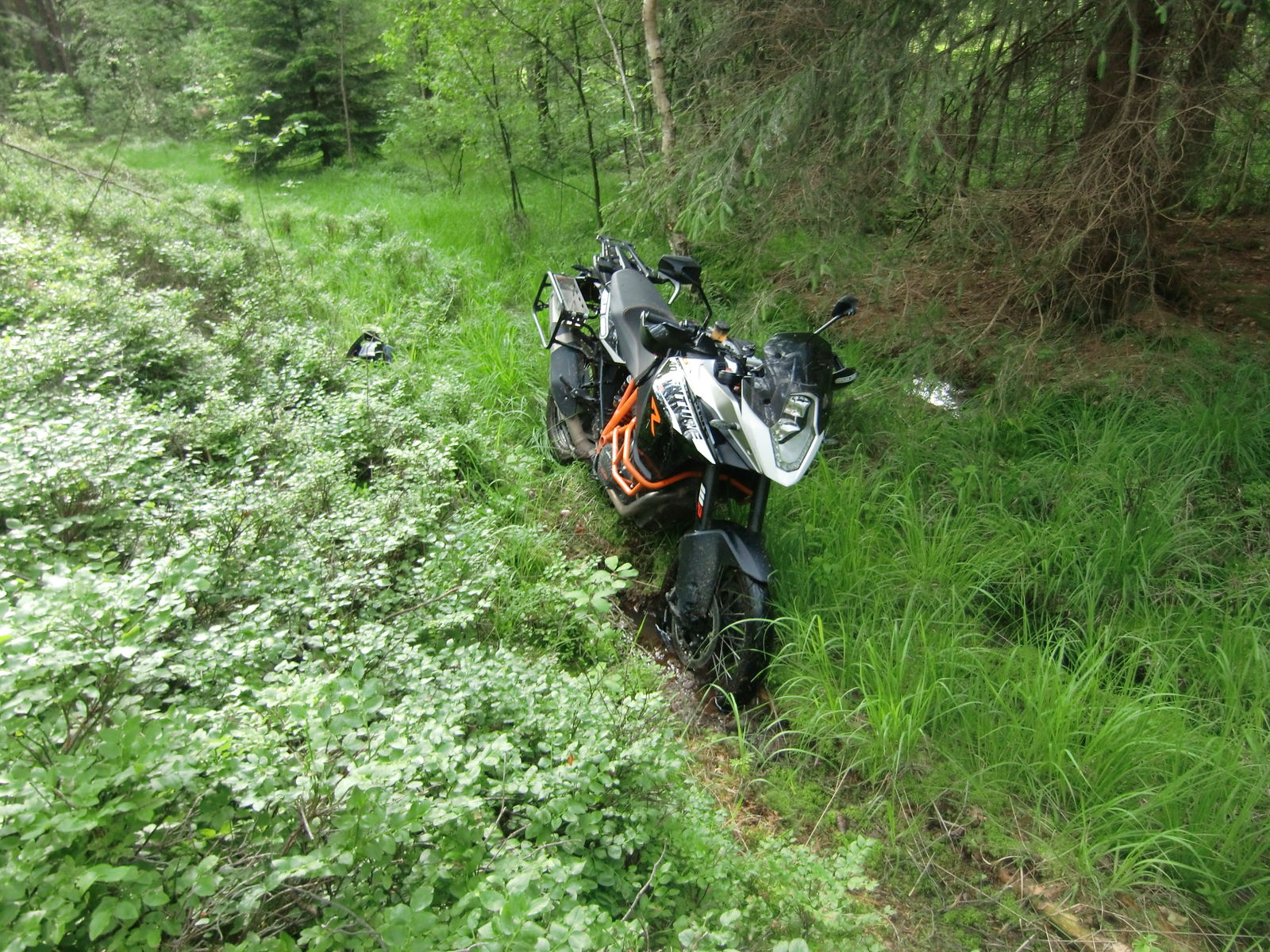 Froh wieder auf einem gut ausgebauten Forstweg zu sein war ich etwas zu schnell unterwegs und mußte die Kati mal ablegen !