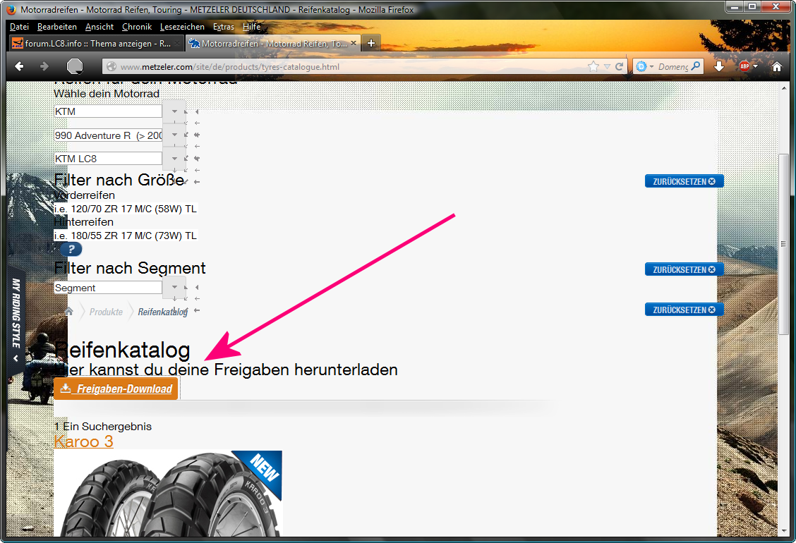 Kann mir jemand schreiben wo ich Reifenfreigabe bei Metzeler finde?