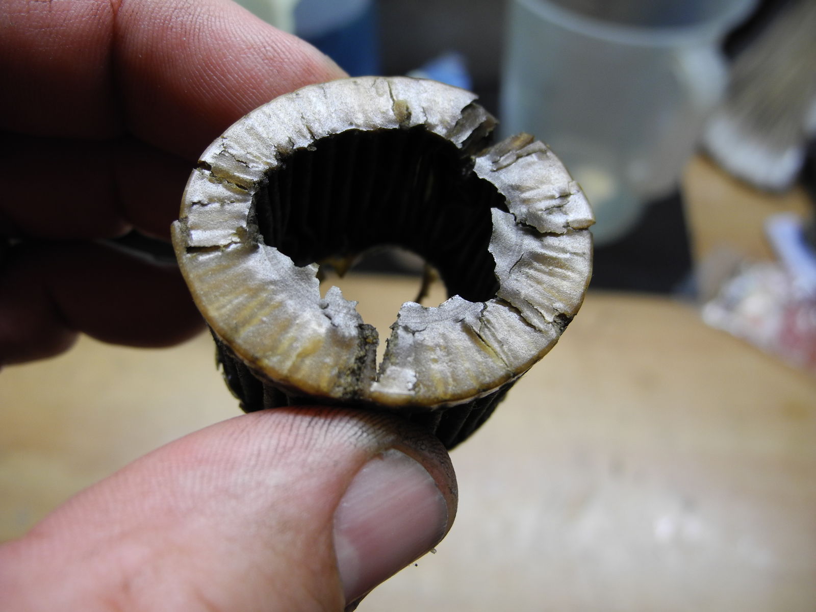Rost ist das aber definitiv nicht. Das Zeugs oben und unten am Filter sind die Reste irgendeines Klebers. Normalerweise gehören da nämlich noch zwei Blechdeckel drauf. (so wie wie unseren Ölfiltern)