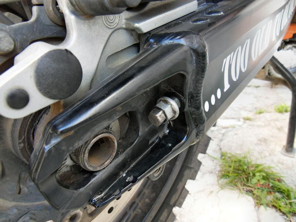 Wollte heute meine Kette etwas nachjustieren (Durchhang mehr als 40mm). Sie hat wohl im Herbst ziemlich gelitten, durch die Schotter-Ausflüge im mittleren Süden Kretas (diesmal nur ca. 15.000km gelaufen, trotz Scottoiler Sad ).