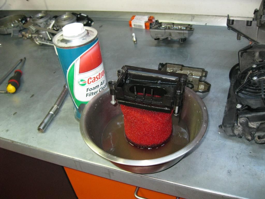 Reinigung mit Benzin, trocken mit Druckluft und neu einölen mit Luftfilteröl. Nach dem Teil sollte man schon ab und an schauen.....