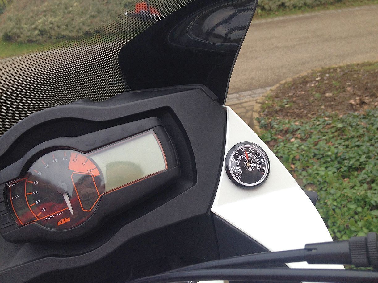 Aber abgesehen davon, dass du wahrscheinlich ebensogut schätzt wie dieser Apparat anzeigt, gibt es doch die nette Tasterlösung am Lenker, mit der man jederzeit zur Temperatur und wieder zurück zappen kann