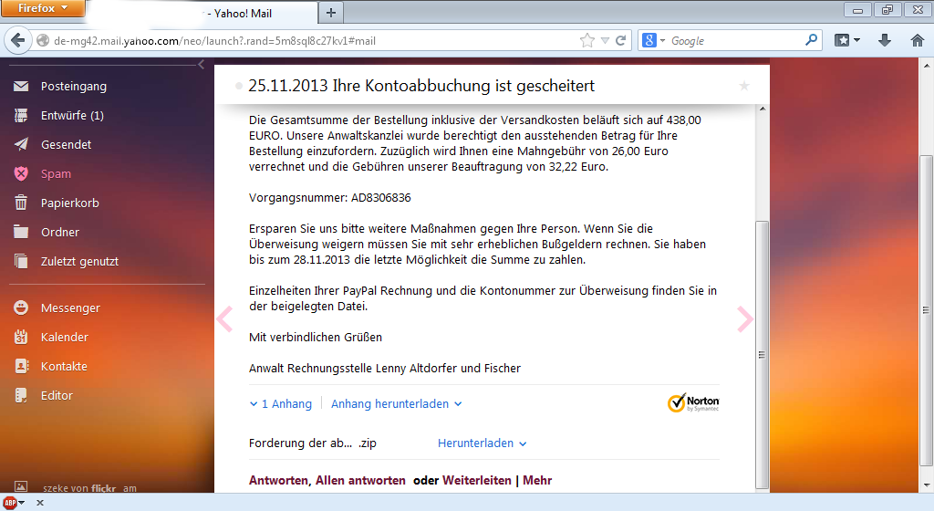 | kretabiker @ Sa, 18. Jan 2014, 15:55 hat folgendes geschrieben: | Ja, ganz übel ist das die letzten Monate. Bekomme ein gefälschtes Schreiben nach dem anderen. Paypal (gleich bei täuschung@paypal.de gemeldet), Abmahnschreiben von Pseudo-Anwälten per Email, redtube Abmahnung per Email (die Geschichte ist eh der helle Wahn ) etc.....!