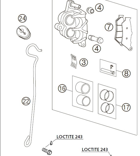 Dadurch bekommst einen besseren Abstand zur Scheibe. Außerdem solltest Du unbedingt den Gummi für die Bremsschlauchführung verwenden. Dieser fixiert die Bremsleitung... sonst hat die Leitung zu viel Spiel in dem Haken - siehe Teil Nr. 24 auf dem Bild