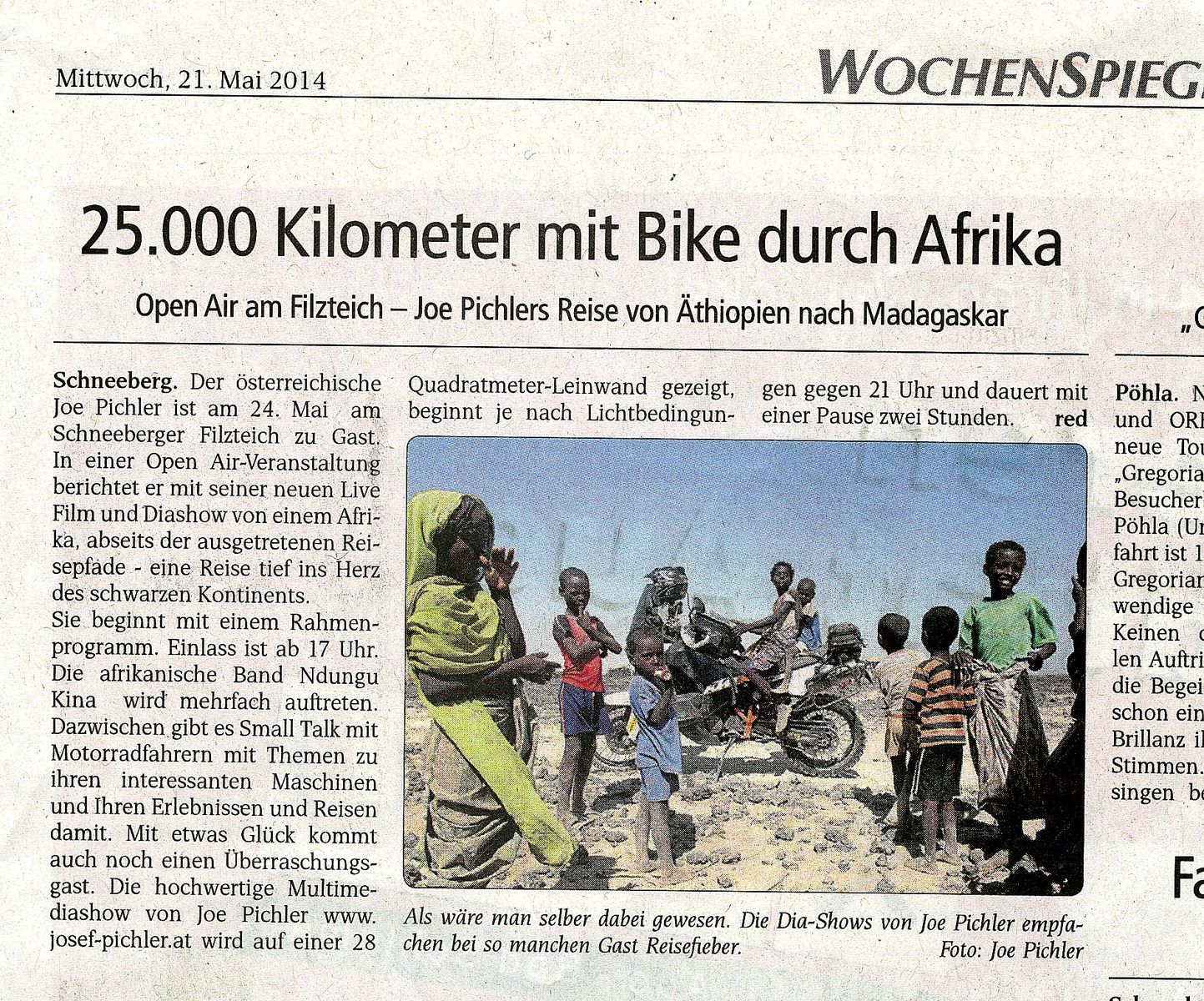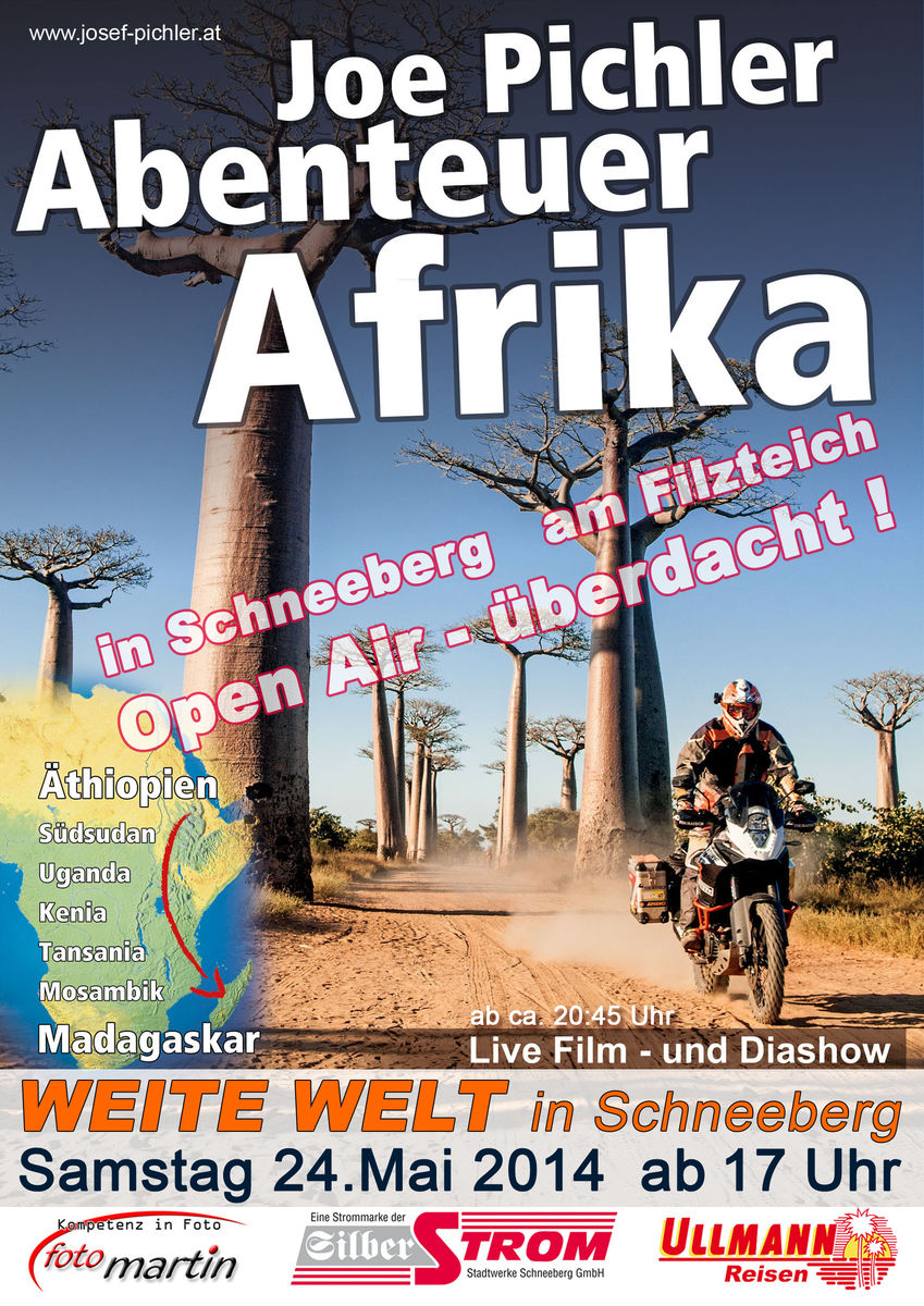 24.05.2014 18:00 Uhr Fernweh am Filzteich mit Joe Pichler / Abenteuer Afrika (Beginn des Vortrags ca. 20:45 Uhr) / Open Air mit Überdachung / im Filzteichgelände Schneeberg , 08289 Schneeberg (im Rahmen des MET6)