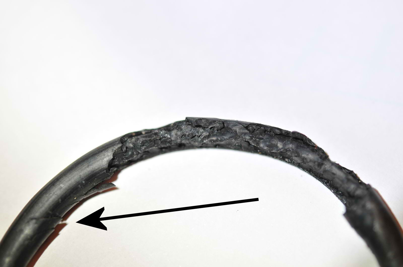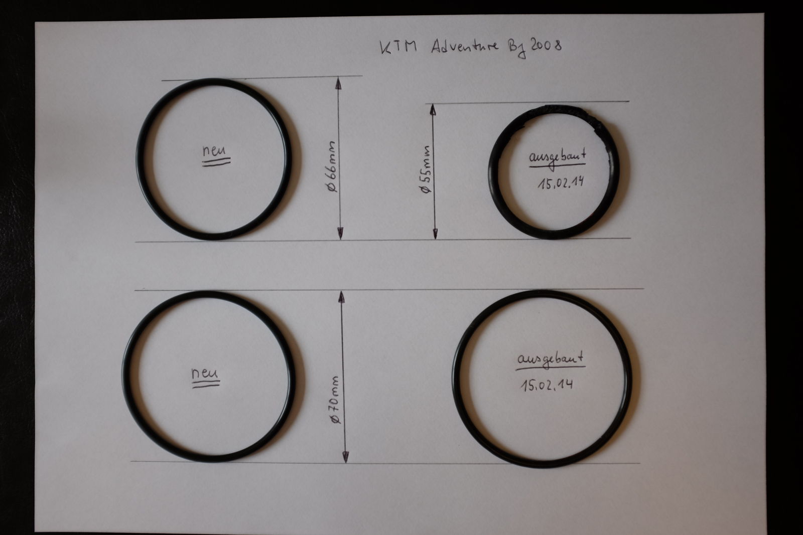 Wieso ist den der kleinere O-Ring (das ist der zerstörte O-Ring!) im Betrieb um ca. 11mm im Durchmesser geschrumpft (original KTM!)? Ist das normal?