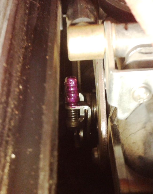 Was mir aber aufgefallen ist daß die Schraube , obwohl eine Feder vorhanden , sehr leicht zu verstellen geht. Habe dabei gedacht daß sie sich mit den Vibrationen, selbst verstellen kann und deshalb von meiner Frau etas Nagelack gestohlen und fixiert ...