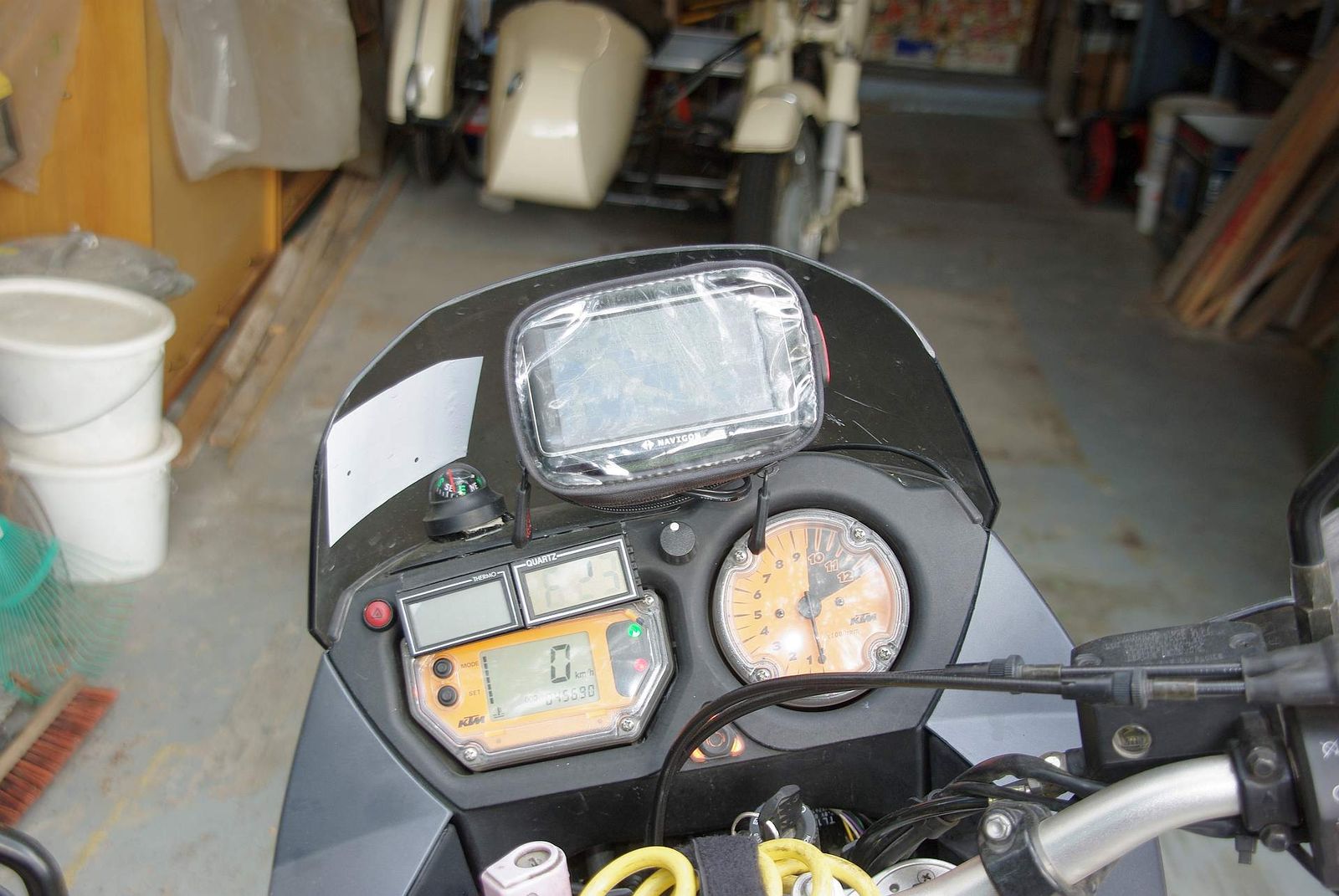 Hallo Andi, hatte die Tasche ( original KTM ) auch mal dran. Ablesbarkeit misserabel. Habe das ganze ein halbes Jahr mitgemacht. Jetzt Tom Rider 4 perfekt.