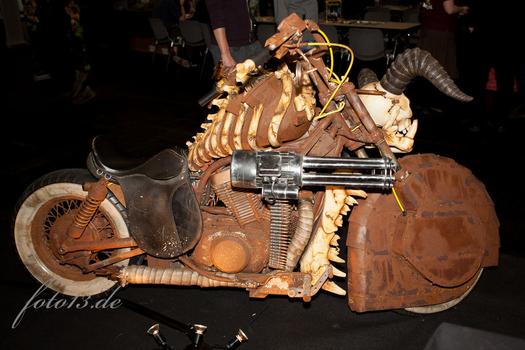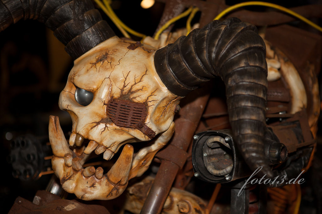 Und zur Skelett-Harley, wem's gefällt. Ich würd se mir nicht ins Wohnzimmer stellen wollen. Nichtmal in die Garage.