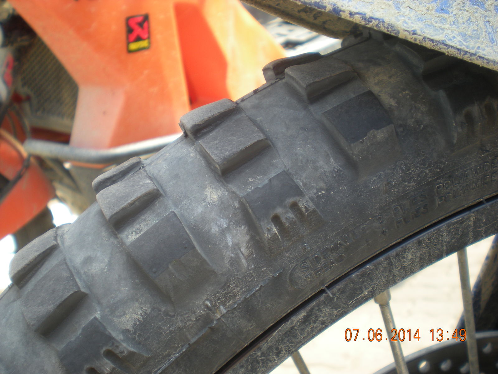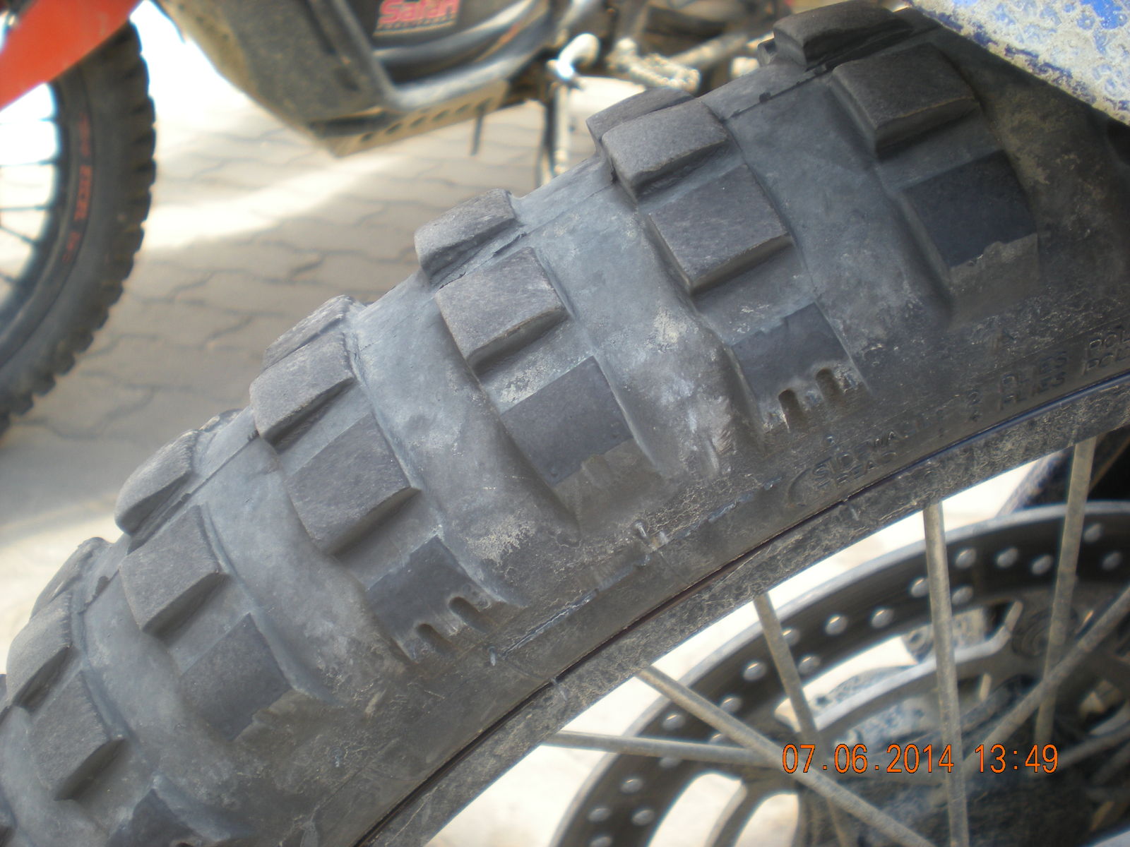 Hallo Leute. Ich bin in der letzten Mai und der ersten Juni Woche mit zwei Freunden ca 5500 Km kreuz und quer durch den Balkan gefahren. 500 Km davon waren unbefestigte Wege. Im Anhang ein paar Fotos von den verwendeten Mitas Reifen. Der hintere TKC80 vom HANNES war im gleichen Zustand wie mein Mitas E10 Dakar. Der Vordere TKC80 war weitaus besser als mein Mitas E09 Dakar.