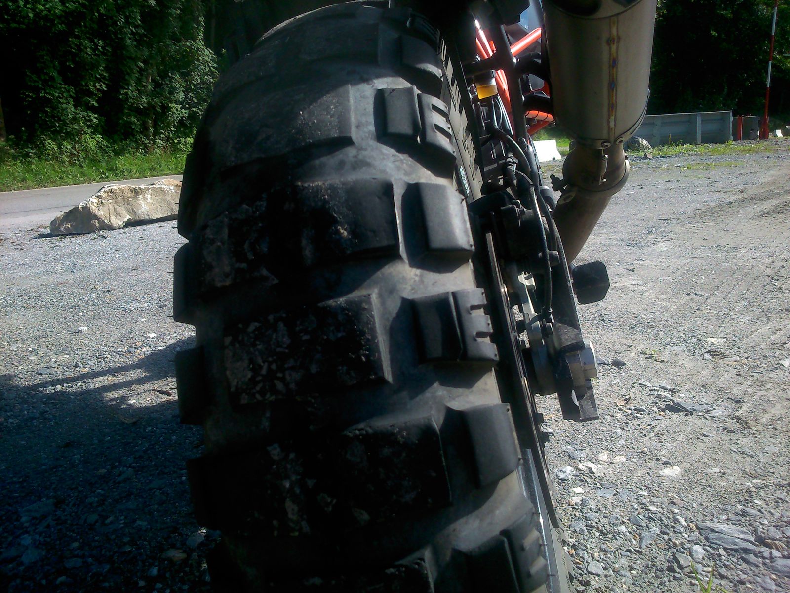 Der Gummi ist im Prinzip mit dem TKC80 vergleichbar, funkionierte bei allen 3 Mopeds wirklich gut. Traktion solange es nicht allzu rutschig wurde gut, Seitenführung hinten, v. a. aber vorne einiges besser als mit TKC 80. Insgesamt gefällt er mir im Schotter, Dreck, Waldboden und Gras um einiges besser als der TKC80, Hardcore-Stoppler ist er natürlich keiner.