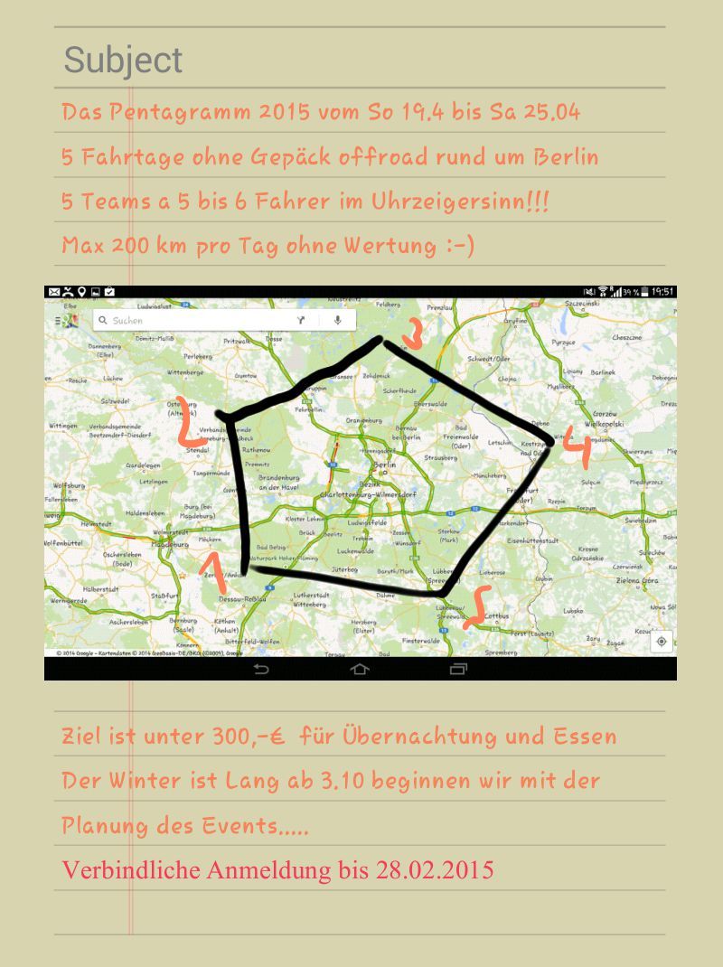 Beim Pentagramm würden die Tagesetappen ja immer quer durch. Berlin gehen. ;-)