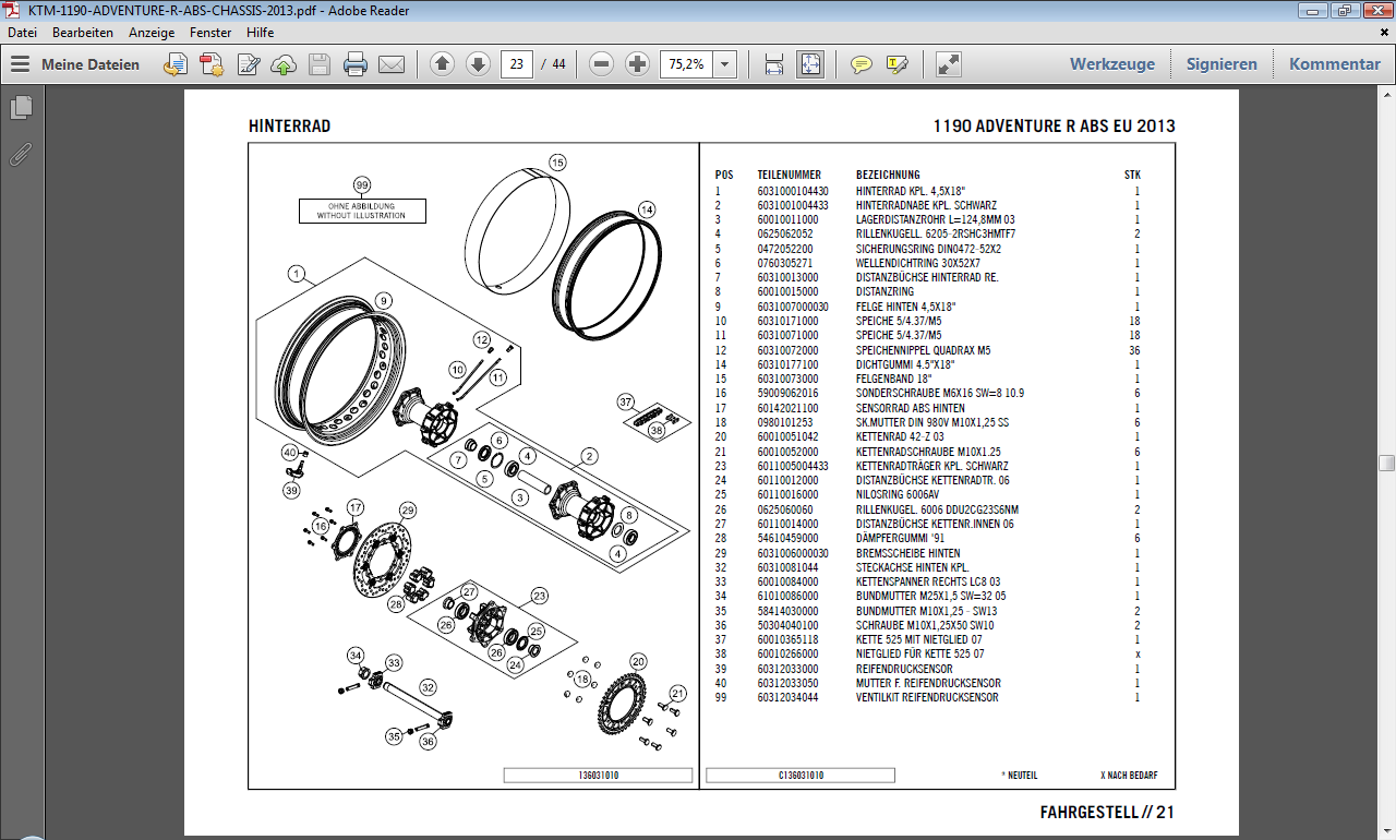 , Du meinst # 14 Dichtgummi, oder? Doch nicht #15 Felgenband? Das Felgenband dichtet doch nicht die Luft ab....hab ich da was falsch verstanden? Oder sitzt #15 in #14....kann ich anhand der Zeichnung nicht erkennen. Ich hätte eher gedacht nur der Dichtgummi hält die Luft im Reifen.... |