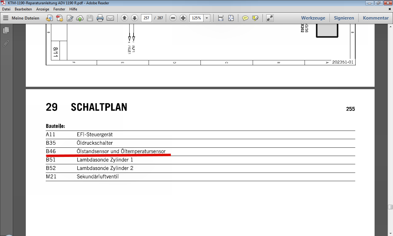 | Hallo, bei der 1190 ist der Öltemperatursensor und der Öllevelsensor in der Einfülleinheit für das Öl mit verbaut.