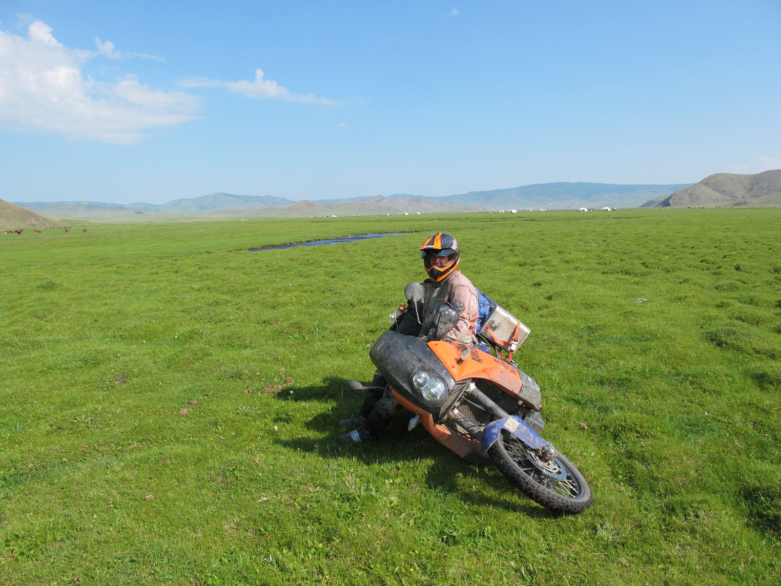 Die Reise dauerte 8 Wochen und 16.000 km. Gestartet bin ich in Rosenheim. In Graz haben sich dann 2 Freunde aus Österreich angeschlossen. Eine weitere KTM und eine BMW 100GS. Die Fahrt ging dann über Ungarn, Rumänien, Moldavien in die Ukraine. Von dort mit der Fähre über das Schwarze Meer nach Batumi(Georgien). Von dort nach Armenien und weiter über Iran, Turkmenistan, Uzbekistan, Tadschikistan, Kirgistan, Kasachstan und Russland in die Mongolei. Auf der Nordroute sind wir dann nach Ulaan Bataar gefahren. Von dort flog ich nach Hause und hab mein Motorrad mittels Kiste und Spedition auf die Heimreise geschickt. Das war Mitte Juli. Mitte November soll es jetzt voraussichtlich in D eintreffen !!