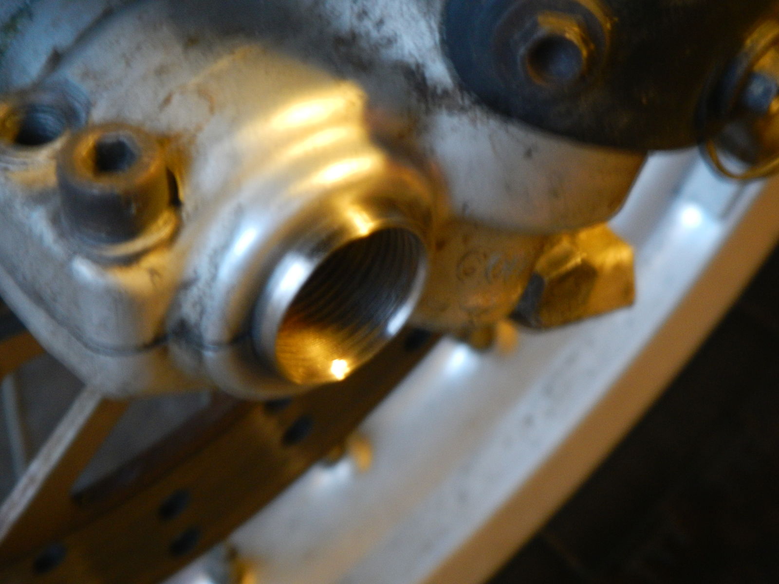 Bei der schwarzen Achse hatte sich nichts geweitet und zum Schutz des Gewindes war die Alu-schraube eingedreht .