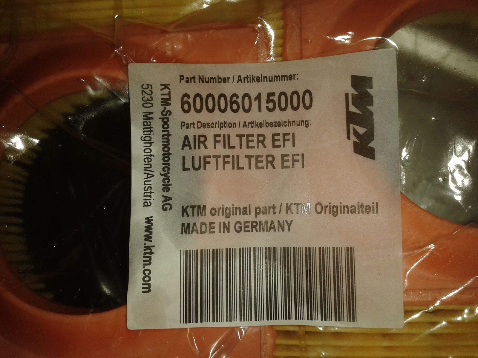 KTM orginal Luftfilter 6006015000 EFI Filter