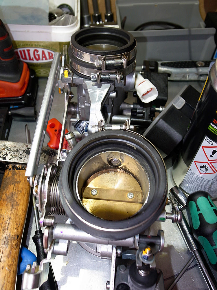 Ich vermute, dass sie unter dem Luftfilter, bei den Trichtern liegen? Sprich Luftfilter runter?