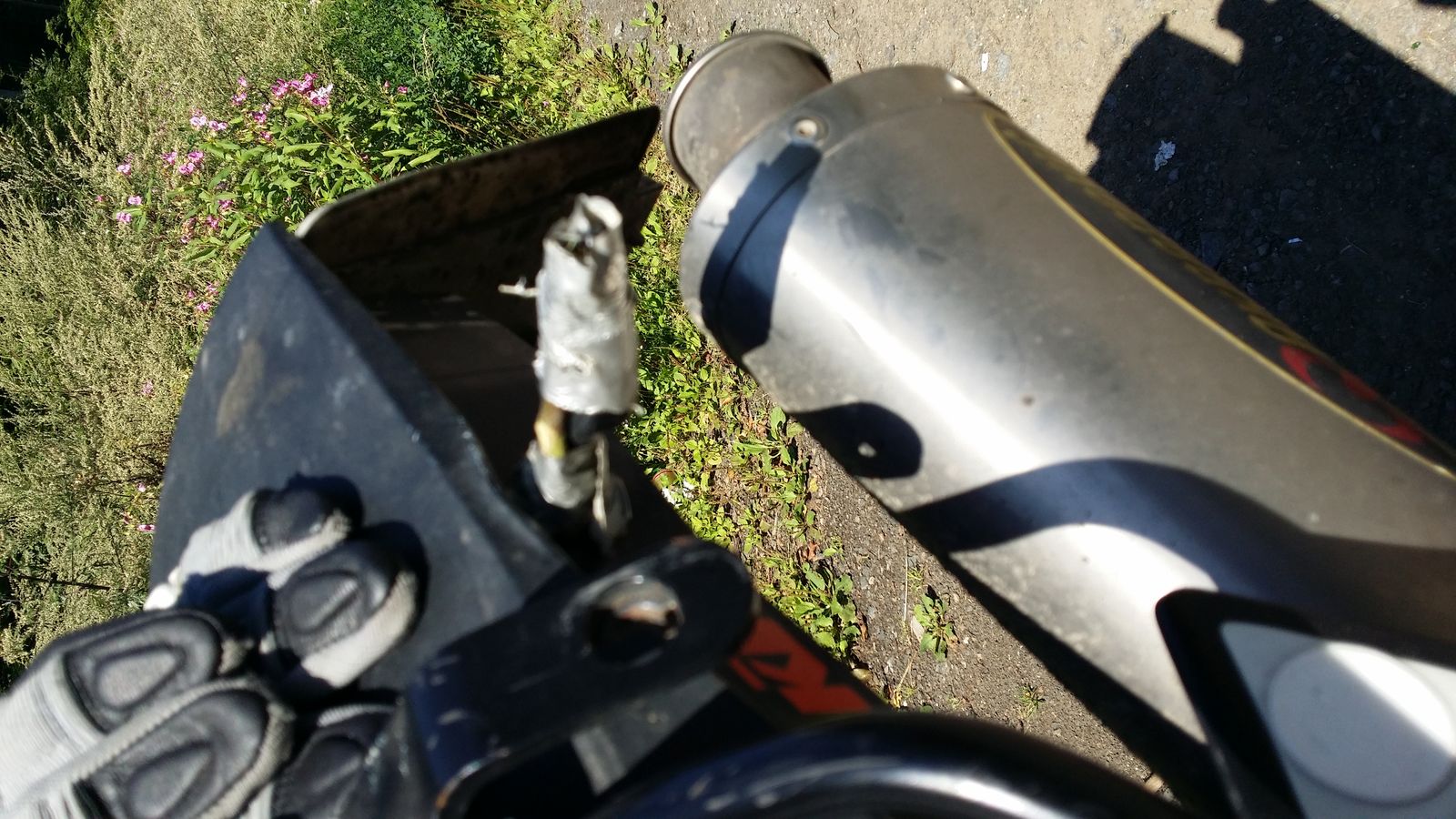 Habe das Teil unterwegs im Wald dann notdürftig geflickt. Mit nem frischen Ästhetik geschient sozusagen. Zum Glück hab ich immer etwas Klebeband dabei. Siehe Fotos. Cool