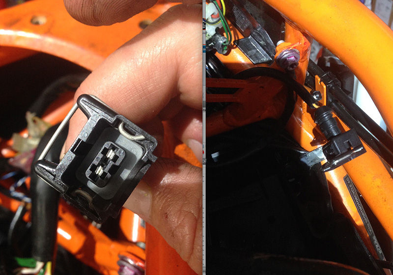 Dieser sitzt am Lenkrohr oberhalb des Lufis. Der Diagnose Stecker befindet sich unter einer Abdeckung an der ABS Einheit.