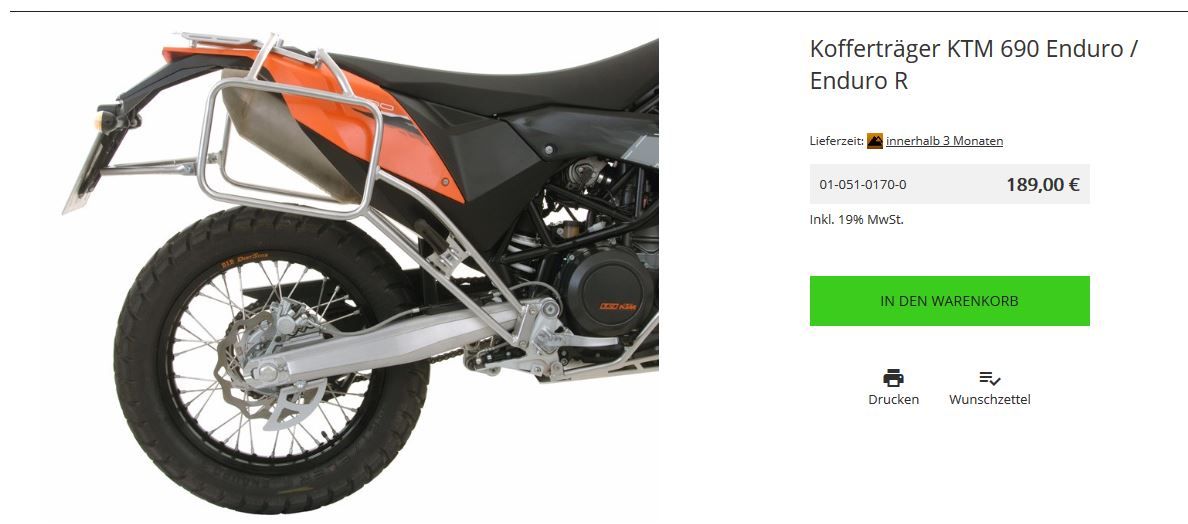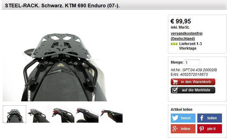 Titel: 690 Enduro - Frage zu Heckträger von SW Motech
