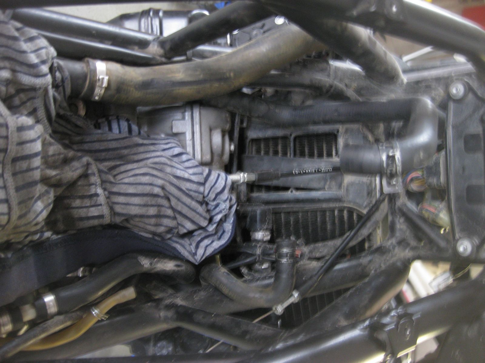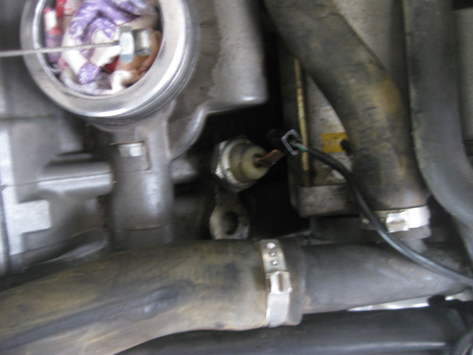 Aus dem Motorentlüftungsschlauch plöddert dieses wundervolle Öl/Wassergemisch auf den vorderen Ansaugtrichter.