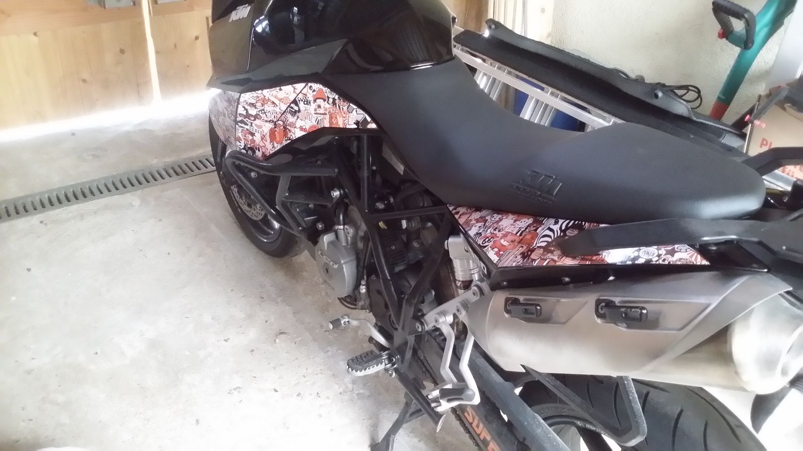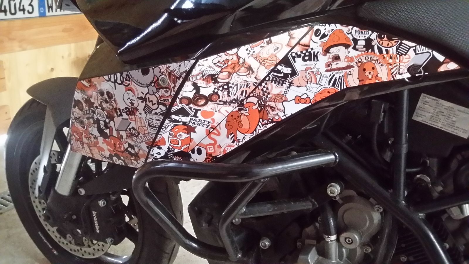Einzig - Schade das die Seitenteile mit drei Einzelteilen foliert wurden und somit die Stöße mit den orangenen Linien abgedeckt, denke es wäre hochwertiger geworden wenn es aus einem Stück foliert wäre.