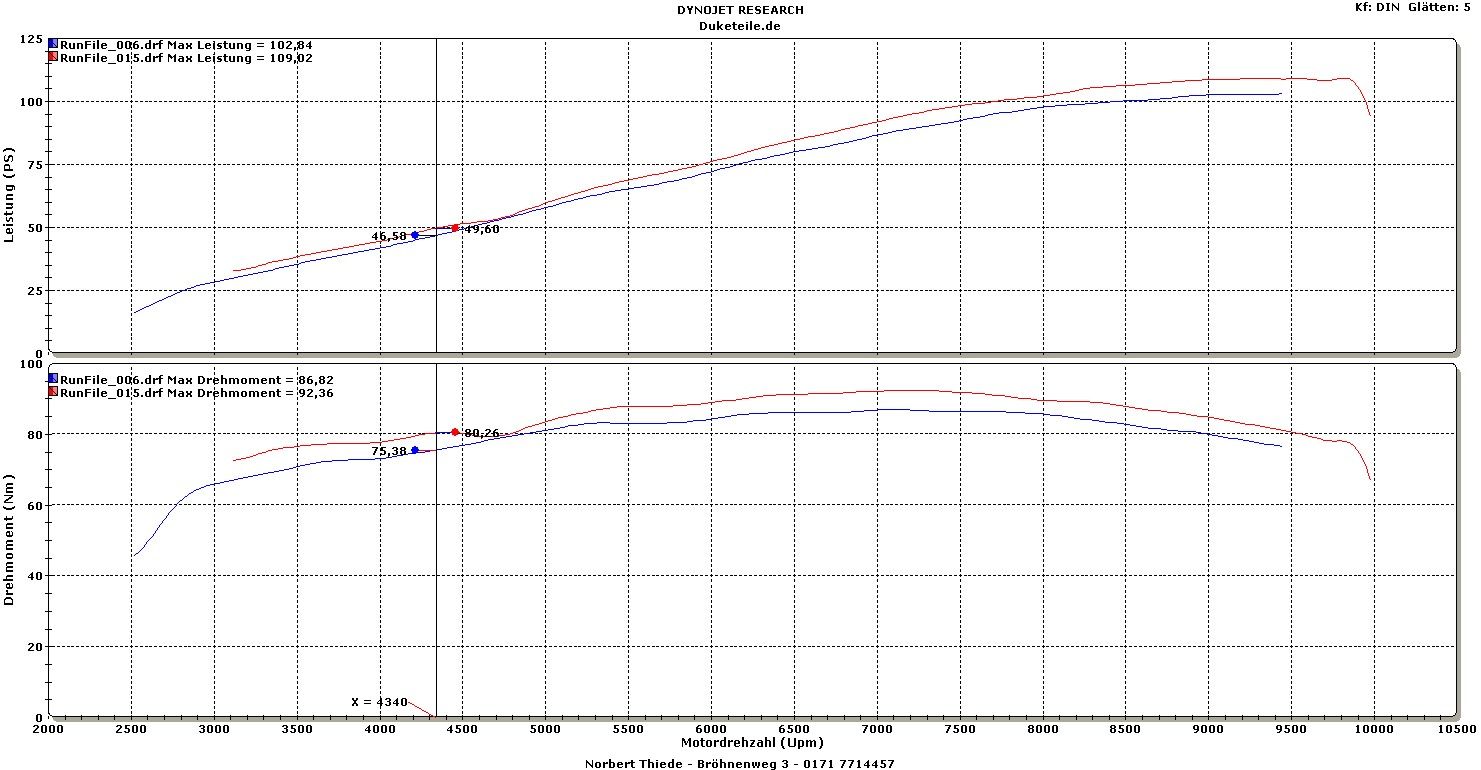 Wenn man jetzt das normale Mapping drauf macht, dann läuft der Motor über den gesamten bereich zu mager, daher hast du auch einen geringeren Verbrauch.