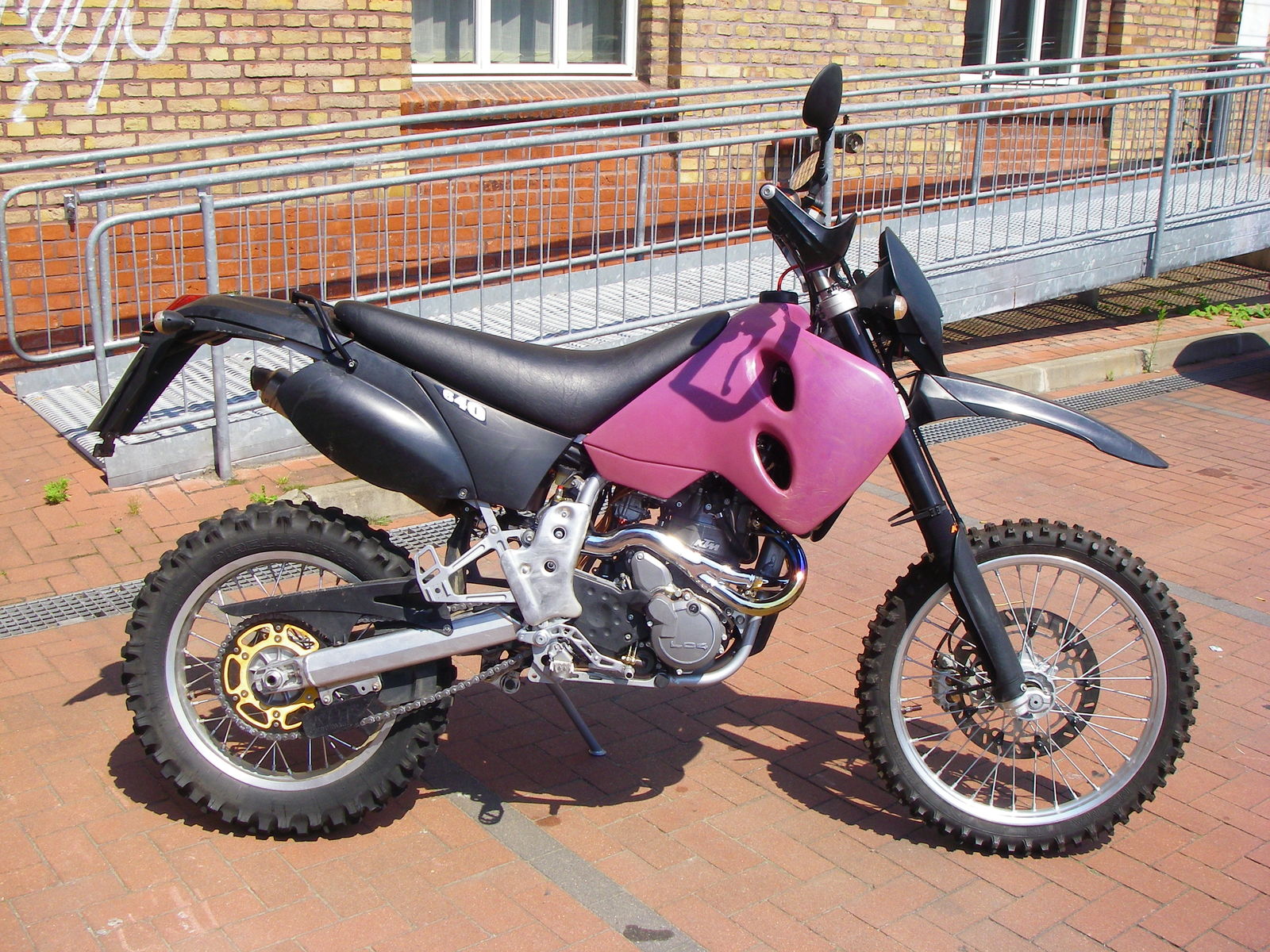 ich erinnere mich, daß es für die 625SXC/SMC einen spezifischen Akrapovic-Krümmer gab, auf den ersten Blick kaum von demjenigen für die 640er zu unterscheiden. Aber bei den verwendeten, großen Querschnitten ging es ja um jeden Millimeter bei der Krümmerführung um Motor und Vergaser herum. War jedenfalls eine traumhafte Anlage - optisch und mit einem Punch gesegnet, den man bei der Nachfolgerin 690R vergeblich sucht.