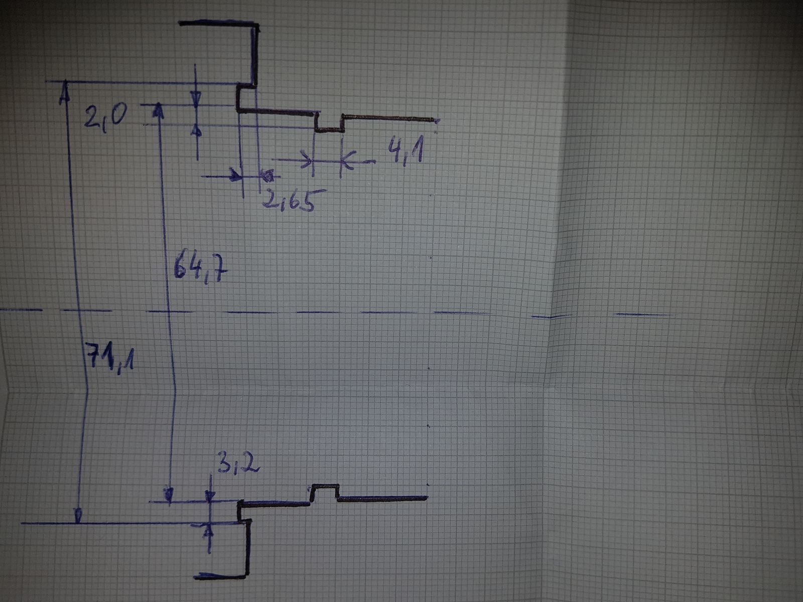 Meine Maße decken sich mit deinen Angaben weitestgehend. An der @-BP sind ja ein radial- und ein axialdichtender O-Ring verbaut. Ich habe den 60x3,5 und den 65x3 verbaut. Der Letztere kann auch 3,5 sein, der 3 mm Ring dichtet aber auch. Die Aufnahmespalten an der Pumpe lassen das problemlos zu, so dass die O-Ringe sich ordentlich verformen und dichten können. Anbei mal eine skizze des BP Querschnitts, die ich mit dem Messschieber ausgemessen habe.