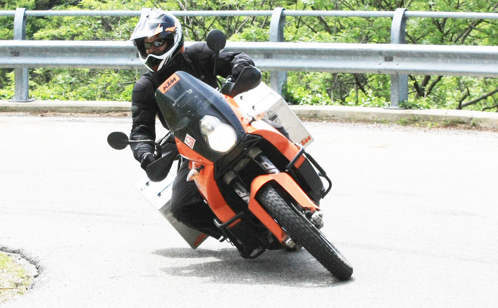 Im Test von "PS" setzte damals auch der Sturzbügel auf, noch etwas angeschliffener als deine. Der Tester sagte, daß das gefährlich werden kann, weil dabei das Vorderrad entlastet wird. Wenn du da schon an der Haftgrenze bist, kommt als nächstes sicher der Sturz.
