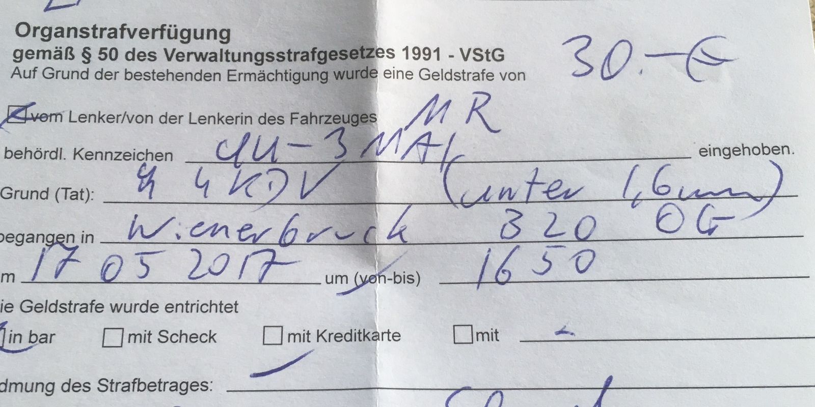 Hhmmm........ wirf mal einen Blick auf das Organmandat, sollte in der zweiten Zeile stehen, die Übertretung, welche TATSÄCHLICH geahndet wurde.