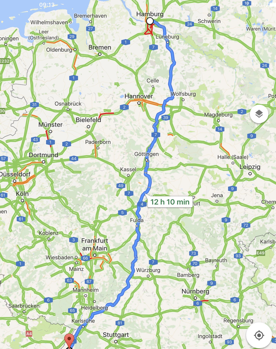 Deshalb die Frage an das Forum: wo empfehlt Ihr mir, auf diesem Weg durchzufahren? Wohlgemerkt wollen wir nicht die Autobahn nehmen. Also bitte mal das Lineal nehmen und einen Strich von Karlsruhe nach Hamburg ziehen ... irgendwo da drum herum sollte es sein.