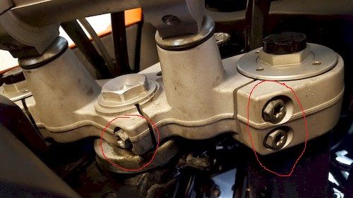 ich bin mir gerade etwas unsicher. Mein Freundlicher hatte gestern die Gabelbrücke runter da ein leichtes Rasten im LKL war. Die Schrauben hat er wieder mit 15Nm angezogen mehr dürfte es nicht sein, er hat wohl schonmal eine gehimmelt. Jetzt habe ich aber nachgelesen das bei der 990 Adv aber oben 20Nm sein sollten. Diese ist aber aus dem Manual bis 2011. Meine Adv ist aber 2012. Bei Modellen 2006 gab es wohl auch eine Änderung. Darum bin ich mir etwas unsicher.