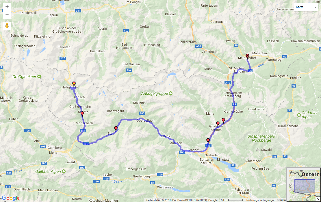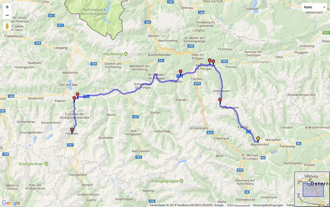 Gasteiner Tal....ja, da hatte ich vor hin zu fahren..........auf meinem Tourenplaner hört dort die Straße auf (siehe Route und Straße auf dem Planer)......gehts da noch weiter (Gaststeiner Alpenstraße ????...Schotter??? erlaubt???), weil Du schreibst Turrach, Flatnitz...etc...?