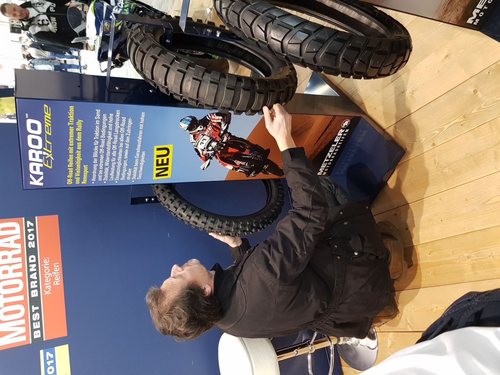 Wolfram sitzt hier am Tisch und ist von LC8 umgestiegen auf BMW 800 und plant Weltreise ...im Moment mit Heidenau Scout ...er hat damit momenttan 35000 km mit 1.Satz gefahren ...nin will er 40.000 schaffen...nicht meine Welt
