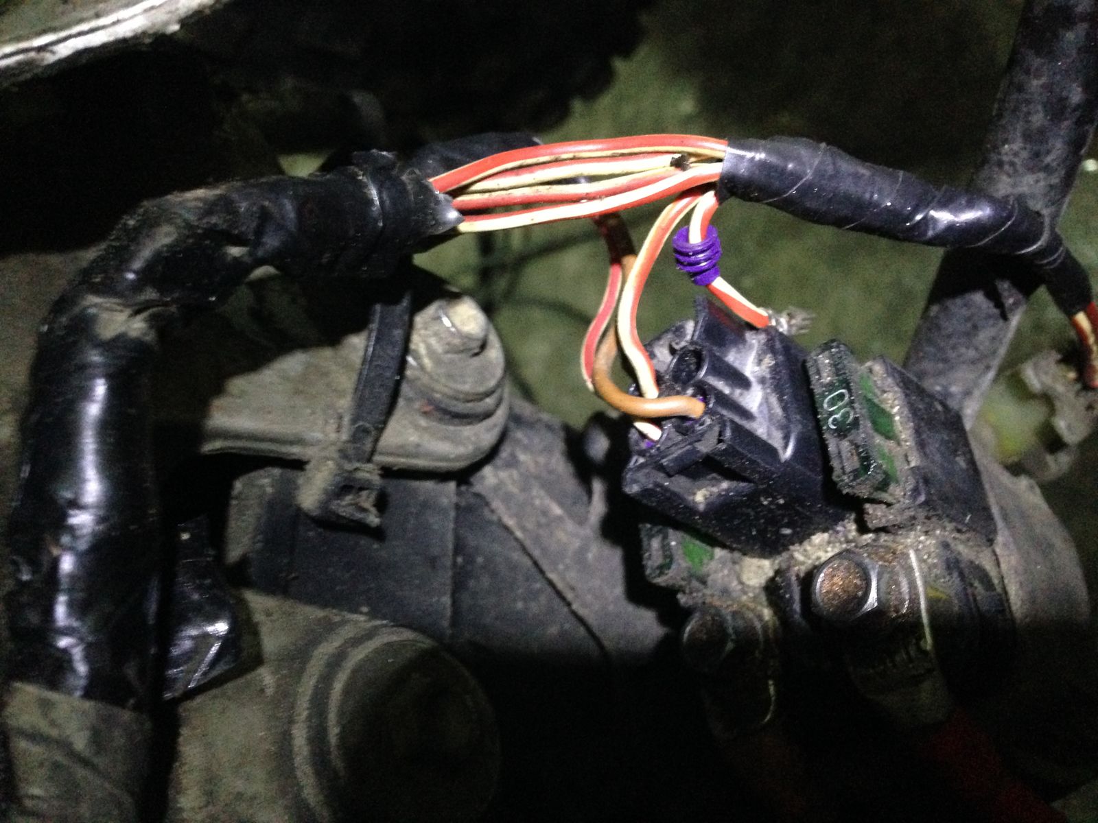 Zwei der dünnen Kabel (Position 1+2)bringt Strom zum Zündschloss . Das braune Kabel ist die Masse für das Anlasserrelais. Das andere Rot/weiße Kabel ist ebenfalls + und versorgt das Startrelais.