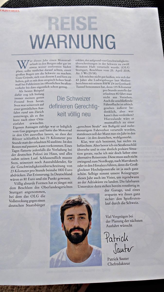 Jetzt krall Dich mal nicht an dem einem Fall fest! Fest steht, das in der CH die Strafen unverhältnismäßig hoch sind.......kannst ja parallel noch das lesen, was im forum.eu dazu geschrieben wird, da hab ich den Artikel von "MO" auch eingestellt.....dazu mußt Du Dich aber drüben anmelden....