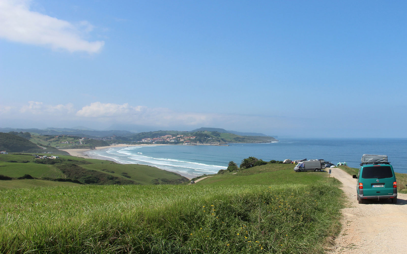 Campingplätze und wilde Schlafplätze haben sich abgewechselt, gekocht haben wir jeden Tag. Die elektrisch betriebene Campingdusche ist am ersten Tag ausgefallen – Wasserpumpenwelle… Die ersten Strandtage am Atlantik waren toll (Tipp in Nordspanien: Oyambre Beach). In den Hochebenen Spaniens und Portugals hätten wir am liebsten schon die Bikes ausgeladen.