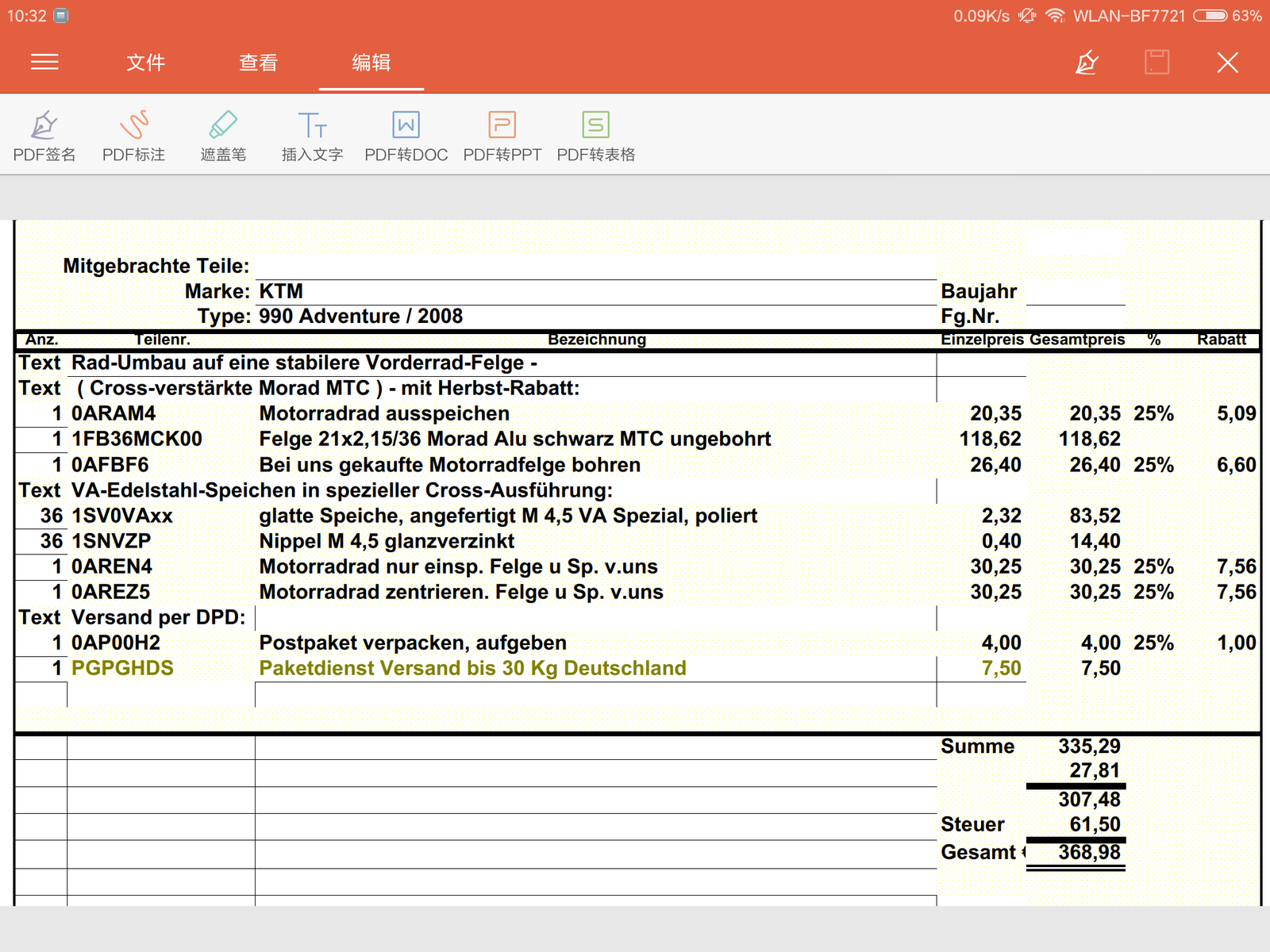 Ich habe für Umspeichen keine 300.- € bezahlt.