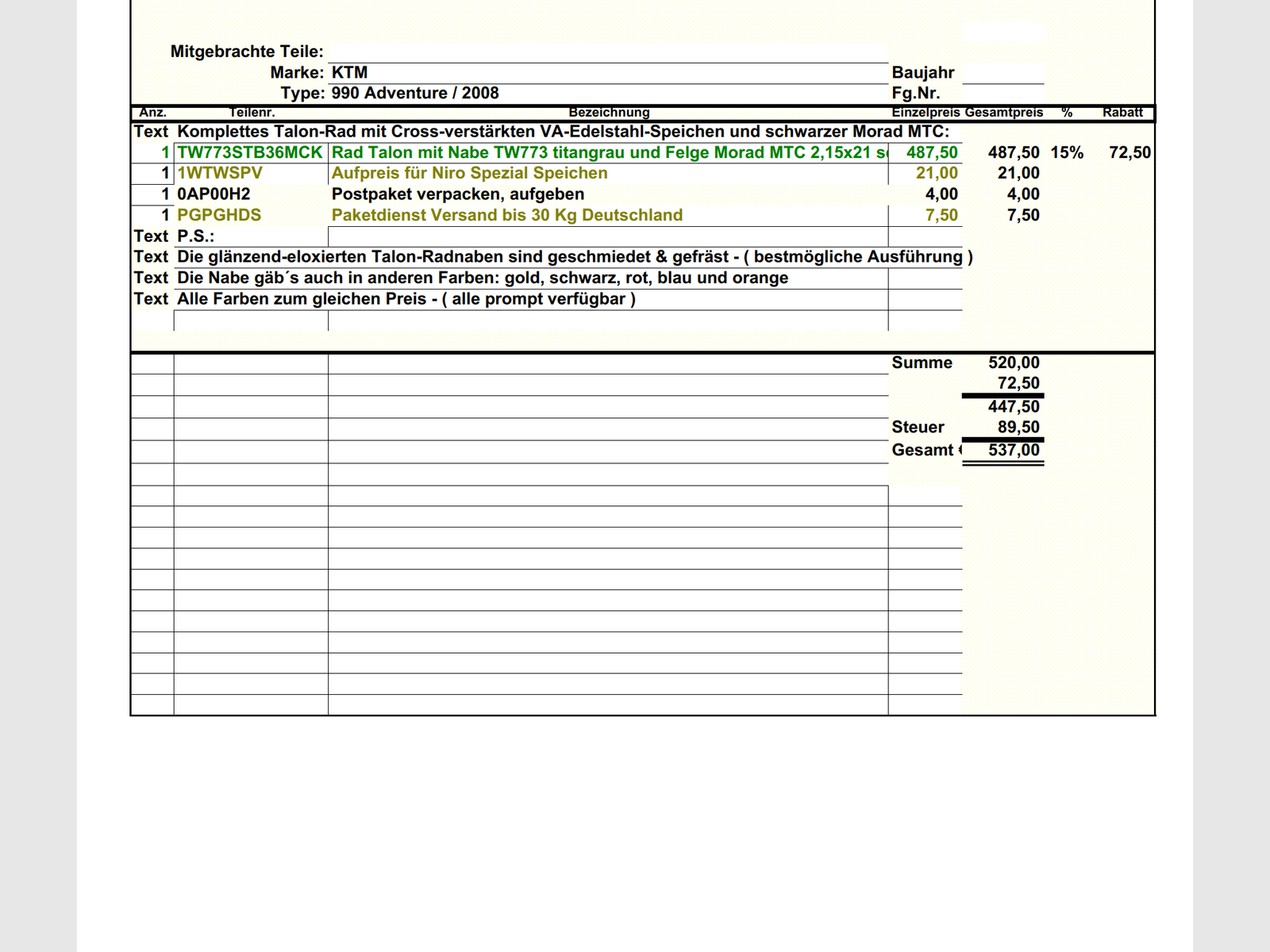 Er hat die 2,15er Felge nicht in der Preisliste, aber sofort lieferbar.