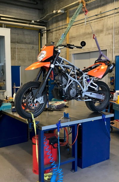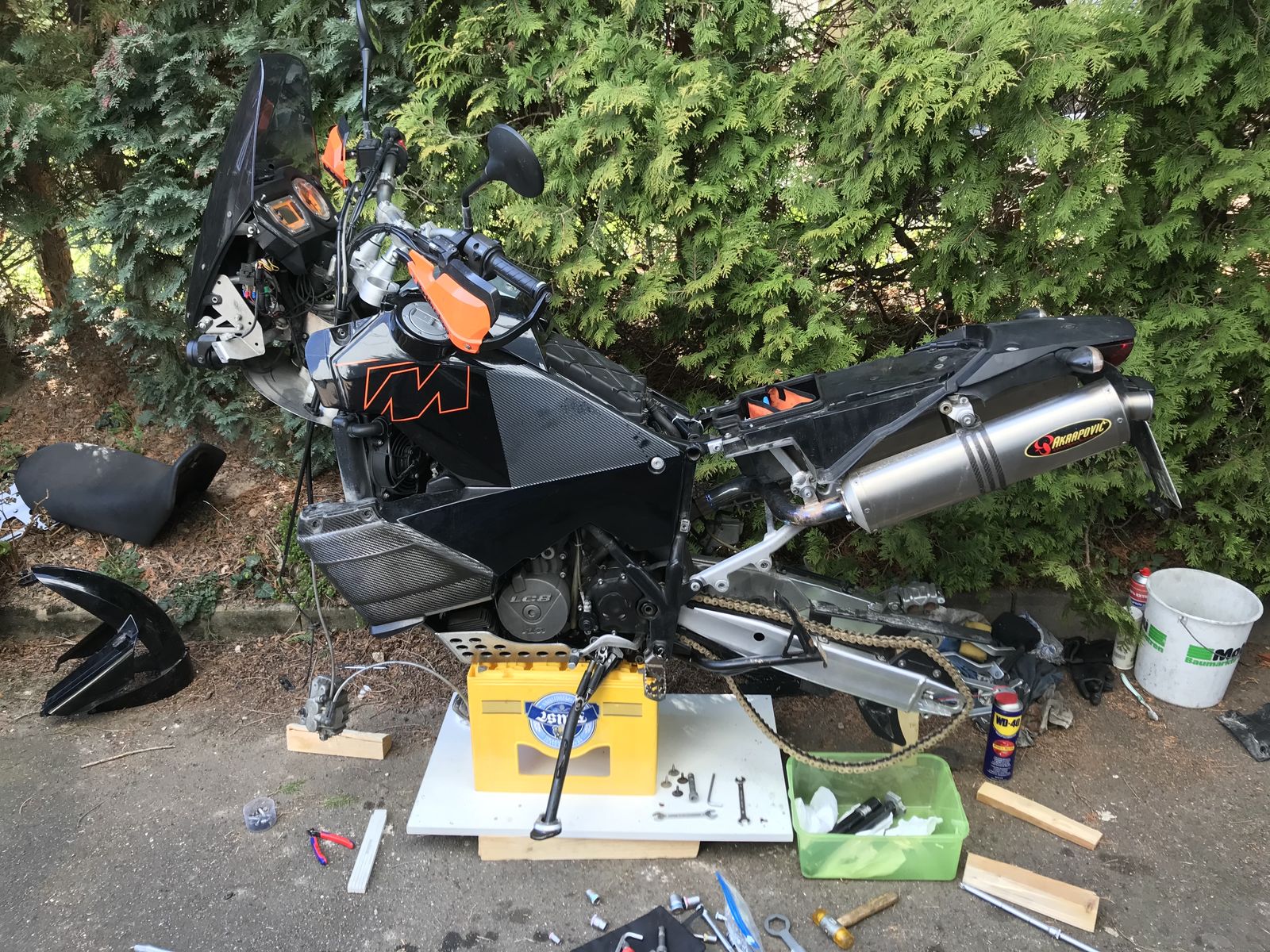 2) Haupständer nicht mehr alle bei KTM lieferbar. Ggf musst du deinen Ständer aufschneiden und ein Stück einschweissen.