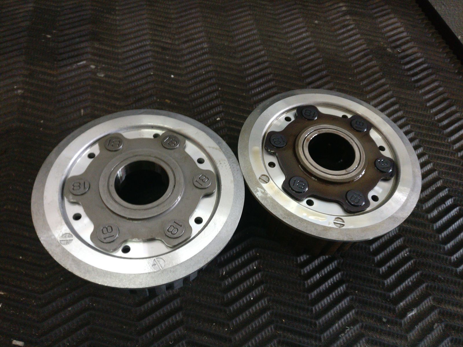 Dann den äusseren Kupplungskorb mit einer Feile vorsichtig von den Einlaufspuren befreien und alles wieder zusammenbauen.