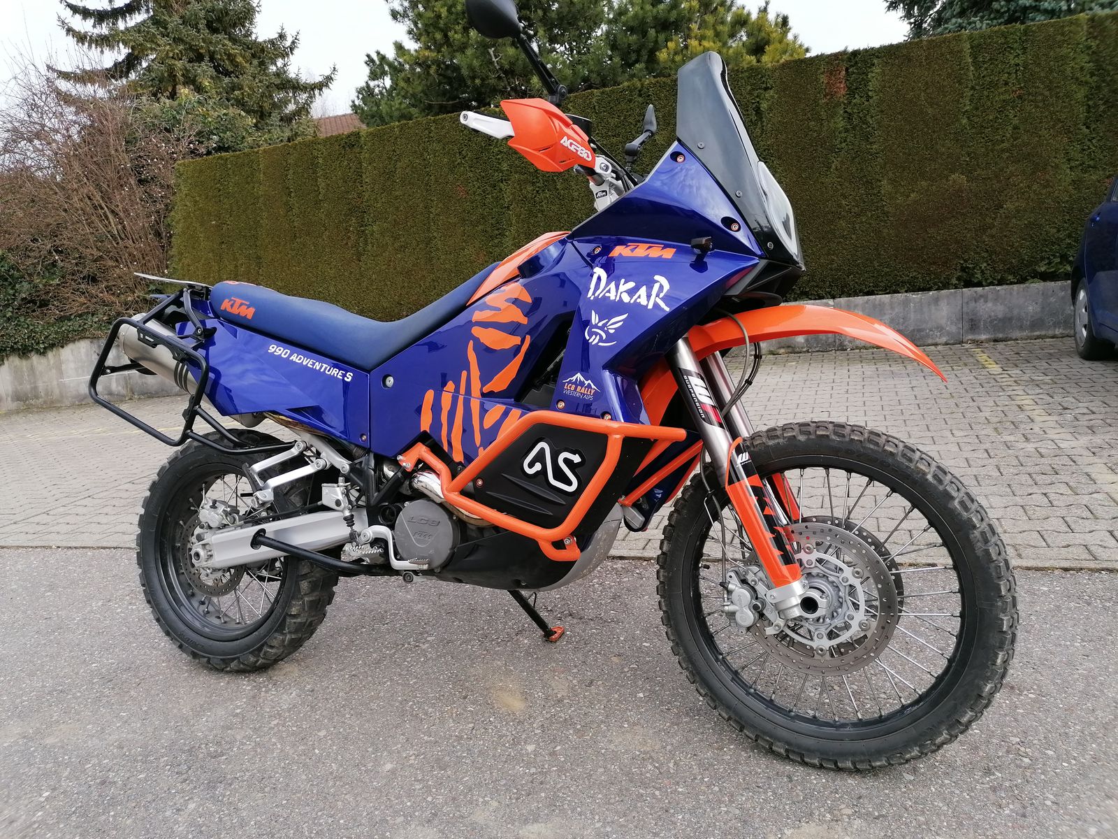 Als dann per Zufall noch eine Blaue KTM 990 Adventure S auf dem Schweizer Markt angeboten wurde, musste es schnell gehen. Schnell angerufen und eine Probefahrt vereinbart. Das Gauloises Blau gefiel mir sofort, die Sitzhöhe war etwas furchterregend zum auf und absteigen aber dafür thront man wie ein König hoch über der Strasse. Die Probefahrt war der Hammer, da gab es nichts zu meckern. Kurz gesagt, das Bike war genau das was ich suchte. Gekauft!