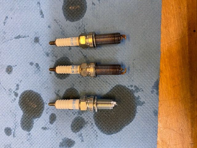 Leider nur eine erhalten dann dachte ich mir machst halt die vordere neu und die hintere kann ich ja später wechseln dachte ich. Also neue Kerze ausgepackt und siehe da ist um einiges kürzer als die alten und eine anderer Typ.