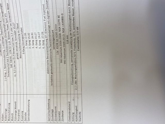 Dann stimmen die Angaben für die Technischen Daten des 990 Adventure Motor in der Rep. Anleitung nicht.