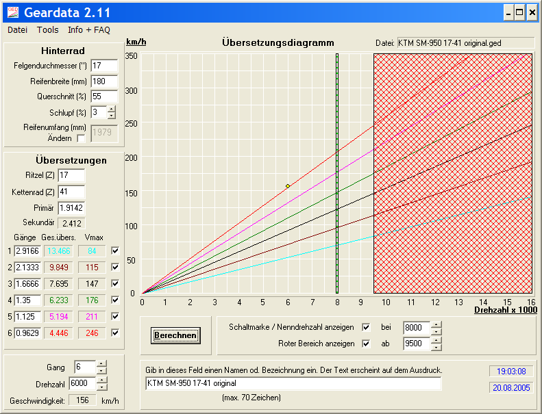 Nun hab ich mit der LC8 SM mein Traumbike gefunden. Doch auch hier hab ich gleich zu Beginn von 17:41 auf 16:41 reduziert (was braucht die SM eine Übersetzung die weit über 200Km/h reicht?!?)