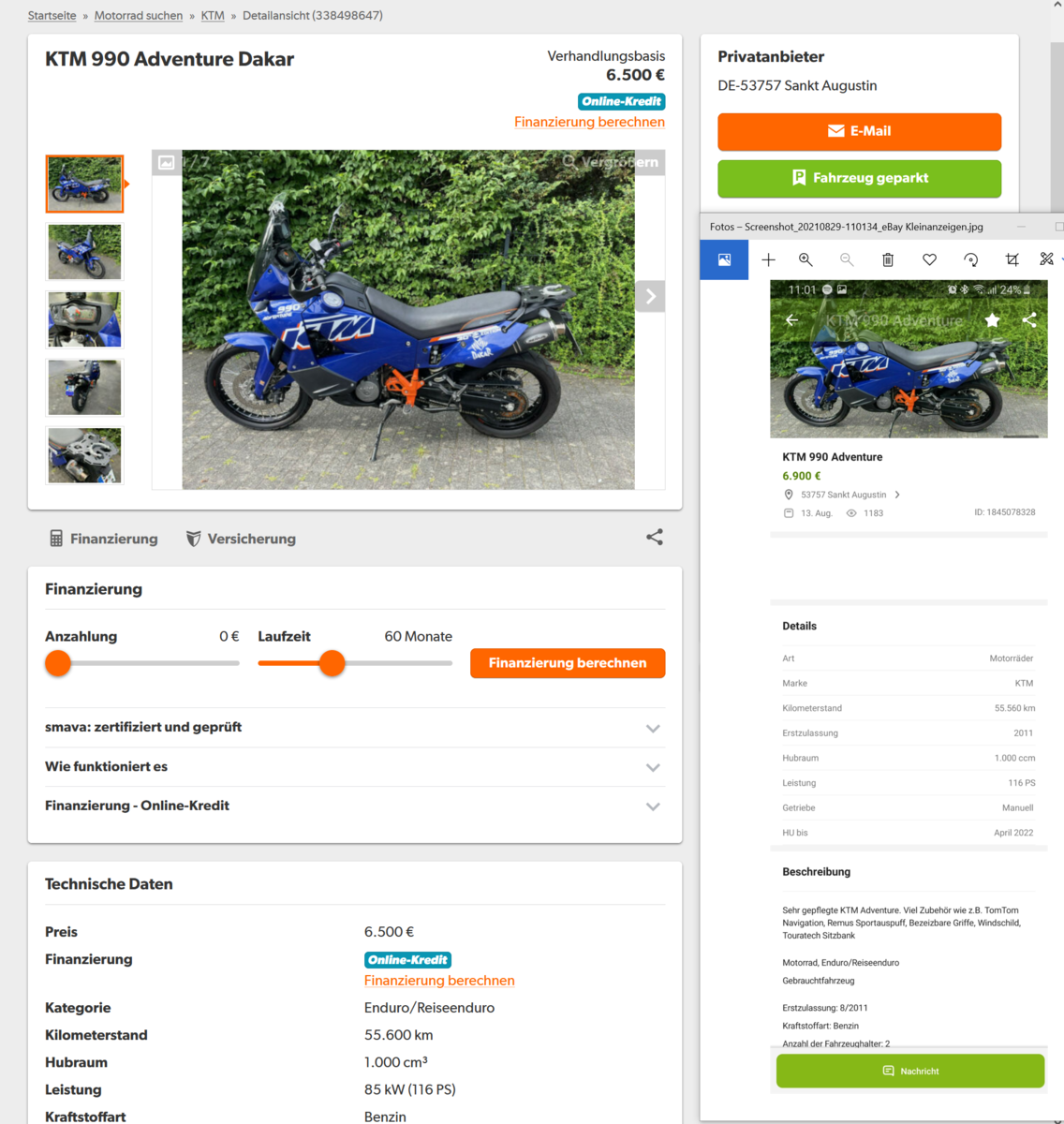 Wie man im Winter nunmal seine Zeit verbringt, habe ich mal wieder die Verkaufs-Plattformen durchpflügt und bin auf die 990er im Anhang gestoßen. Das Motiv kam mir bekannt vor und so stöberte ich in meinen Screenshots von letzem Jahr und siehe da: 29.08.2021 für 400,-EUR mehr war sie schonmal inseriert.